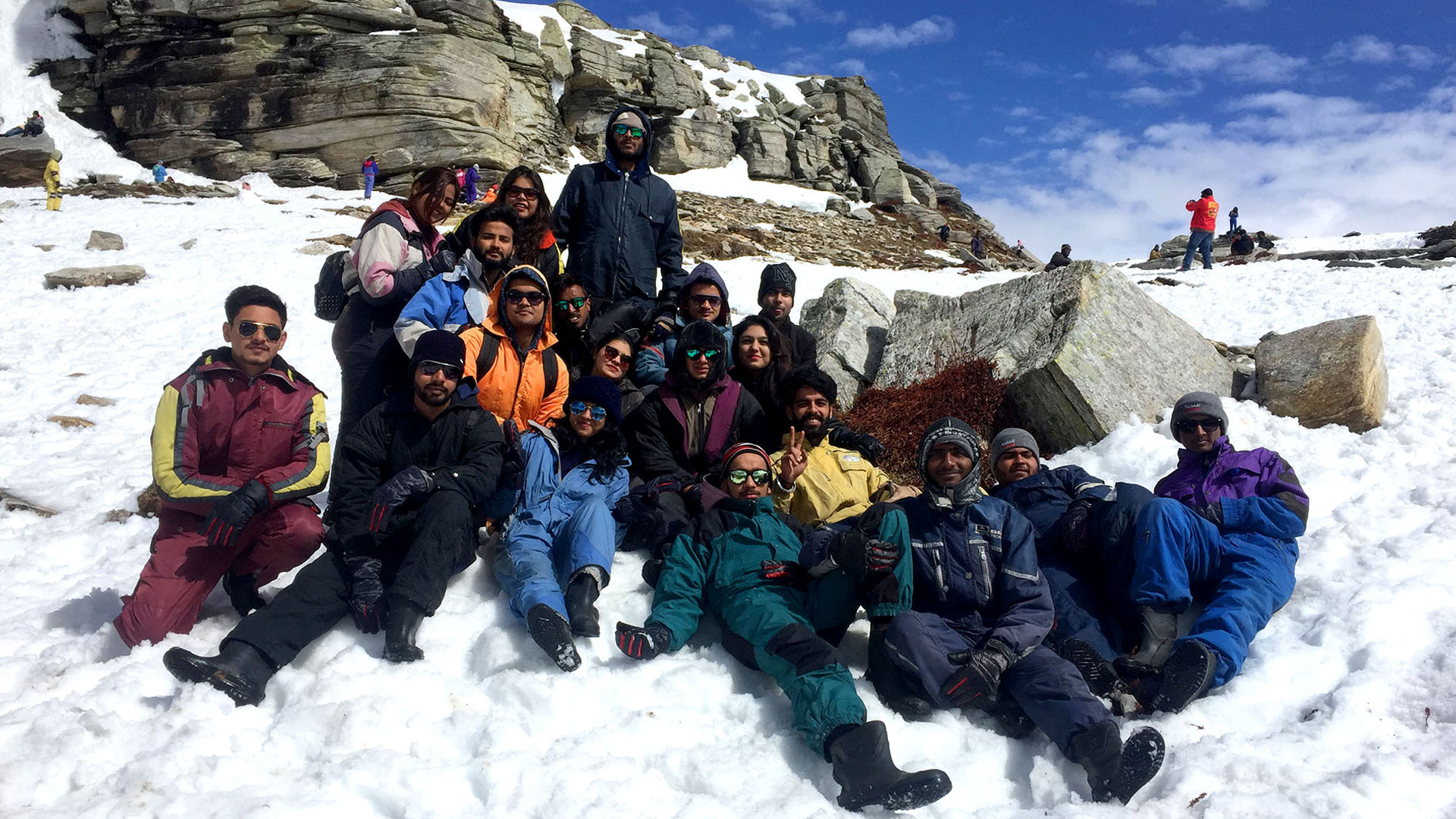 Students enjoying the freezing cold at Rohatang Pass